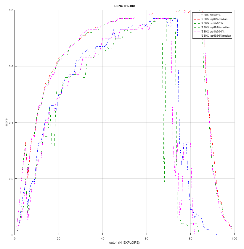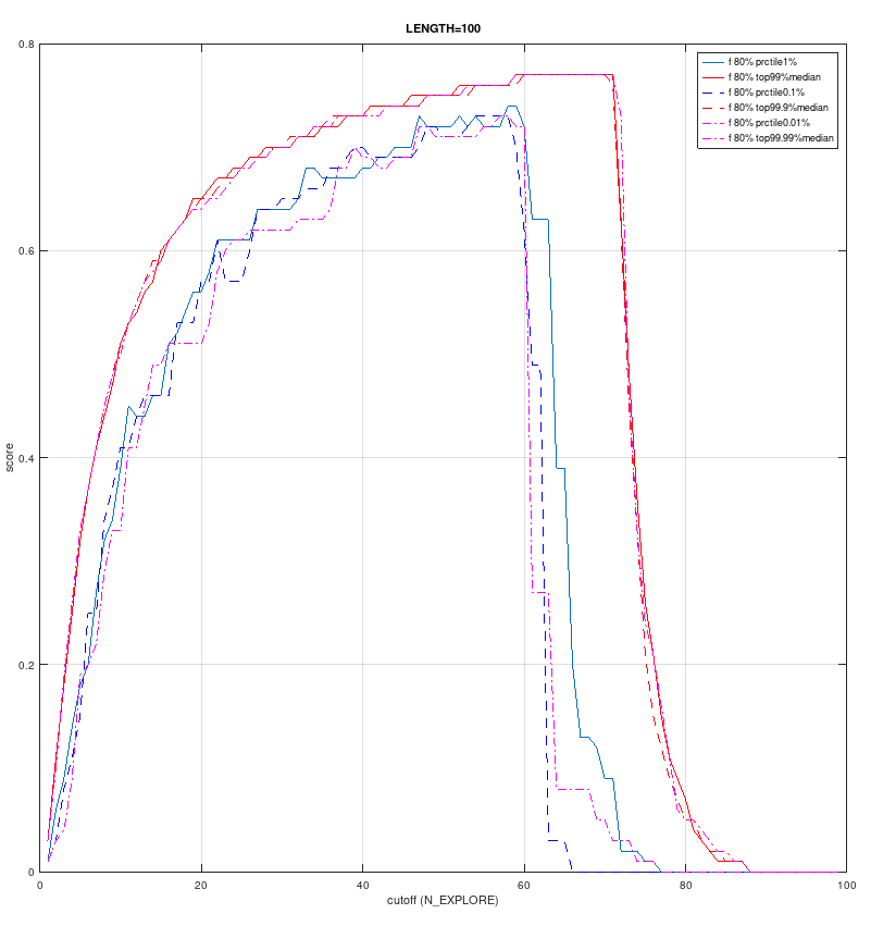 My favorite would be soft_factor=80% and cutoff threshold N_EXPLORE around 40/100, which gives a score of 0.68 at the lowest 1% percentile.